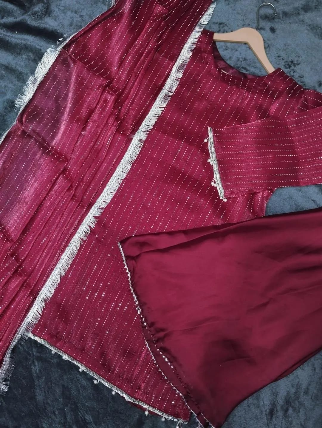 : FULL HEAVY STONE WORK FRONT AND BACK SHIRT, PLAZO AND FULL HEAVY STONE WORK AND LACE WORK DUPPATA 3 PEACE SUIT